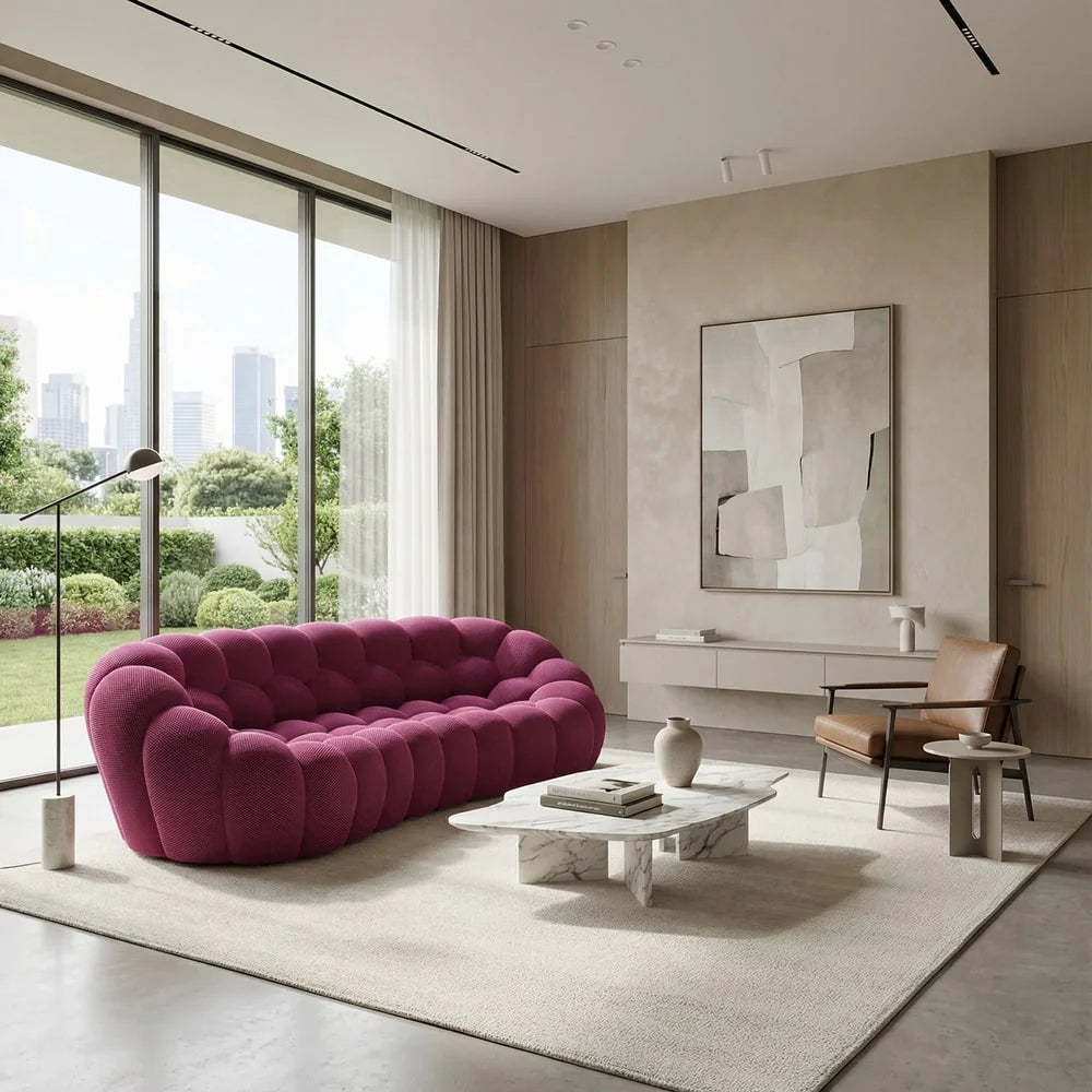 Le Canapé Bubble Violet incarne cet équilibre parfait : une allure raffinée, une conception technique irréprochable et un confort digne des plus grands salons contemporains.