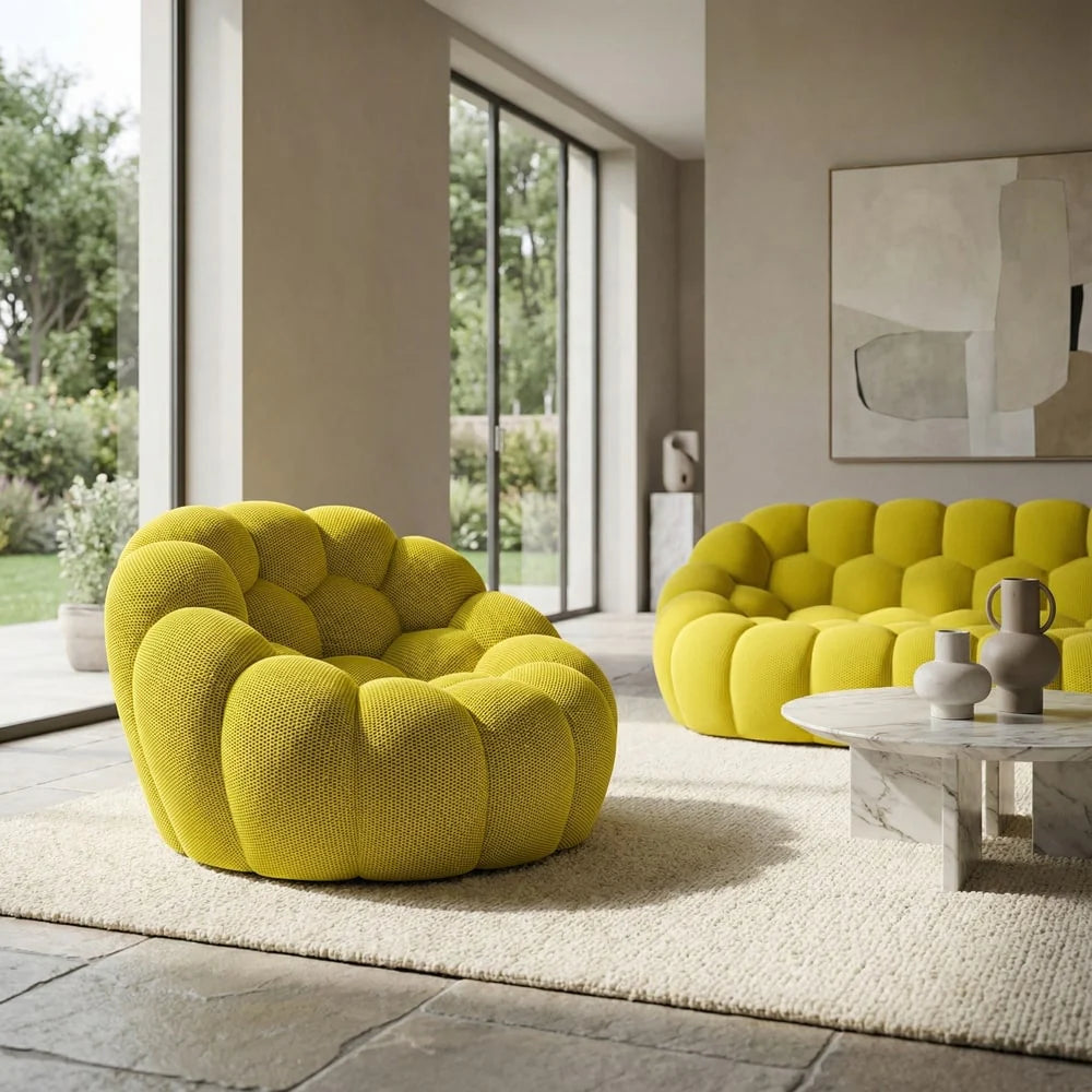 Le Fauteuil Bubble Jaune en est la parfaite incarnation : un style lumineux, une conception soignée et un confort digne des plus beaux intérieurs contemporains.