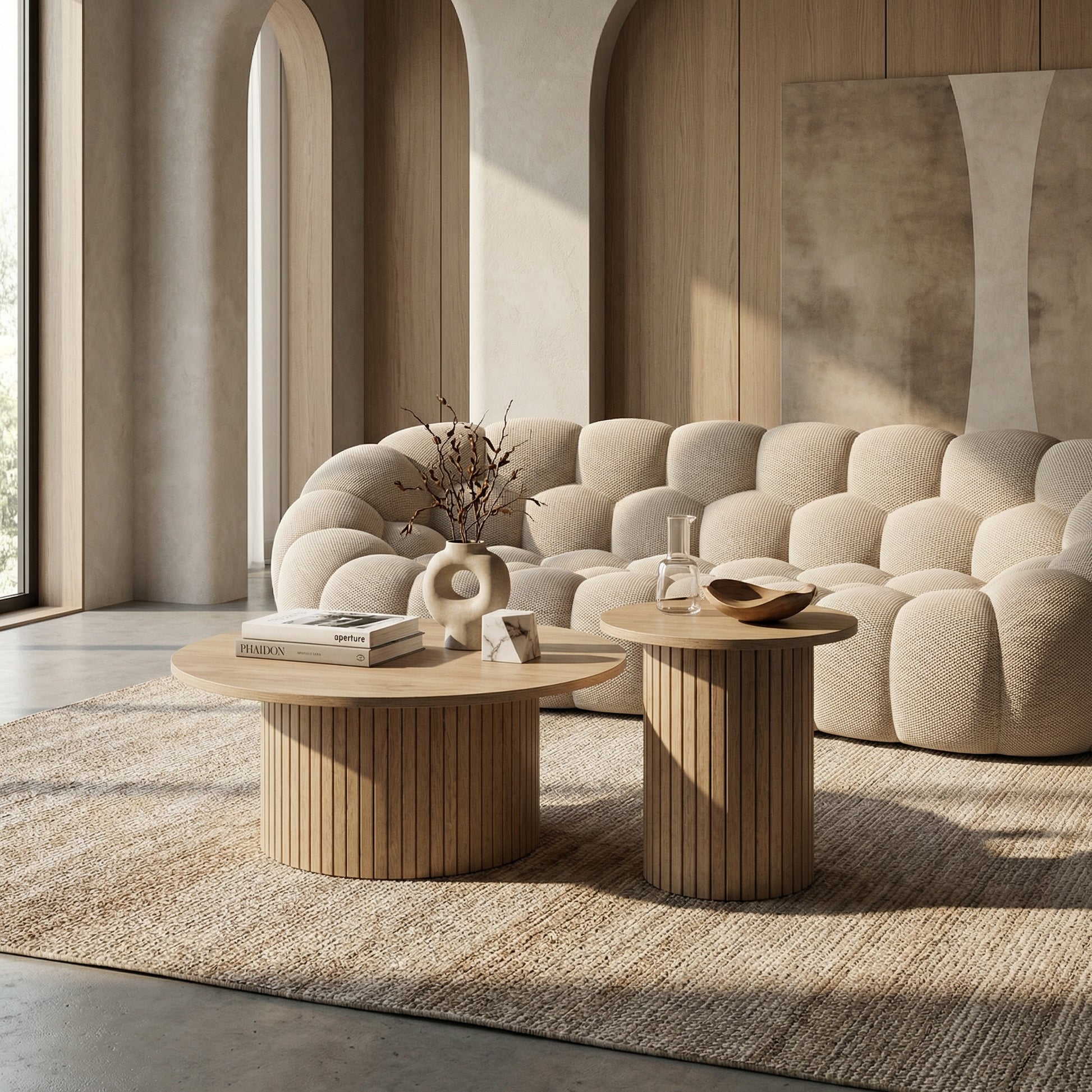 L'ensemble Lyna Chêne Clair est une ode à la nature et à la douceur de vivre. Conçue pour ceux qui cherchent à transformer leur salon en un véritable cocon, cette version mise sur des nuances de bois blond et une texture organique qui apaisent instantanément l'atmosphère.