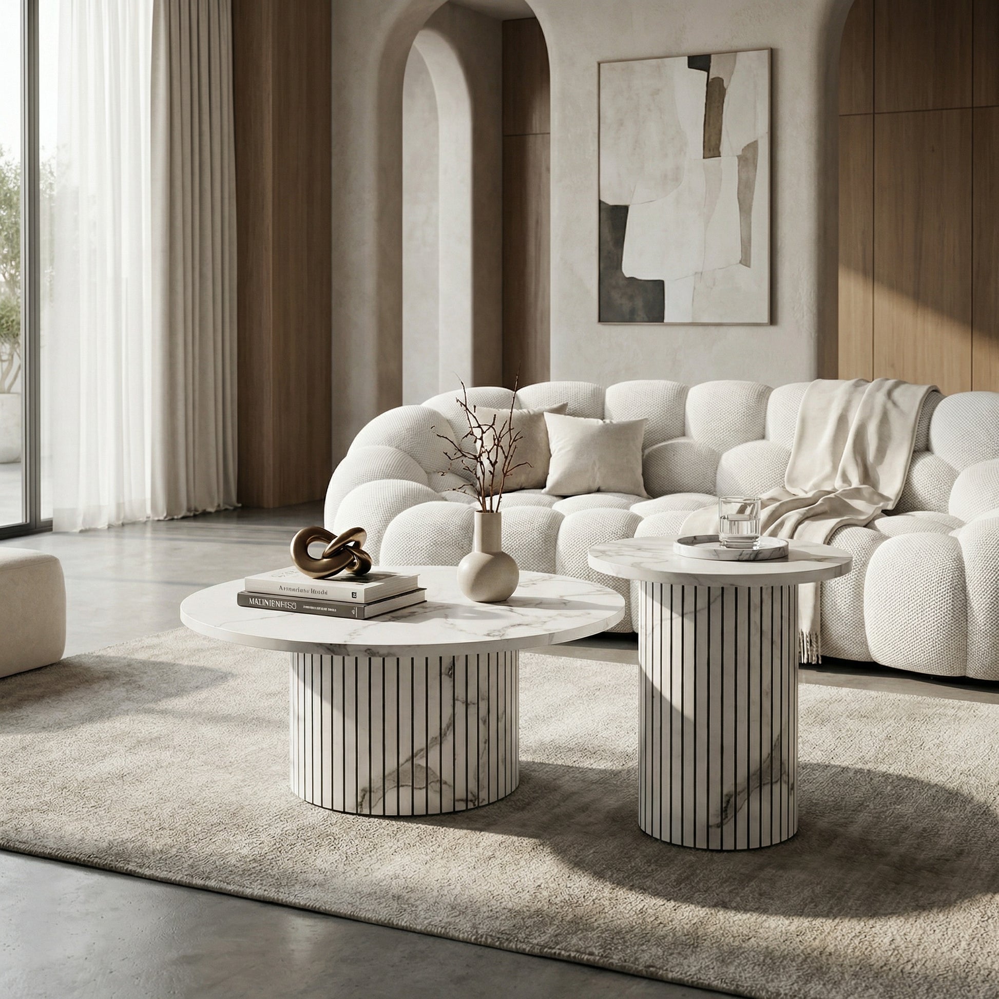 Plongez dans un univers de pureté avec l'ensemble Lyna Marbre Blanc. Pièce maîtresse de notre collection, ce duo de tables basses incarne l'élégance absolue du style néo-classique revisité par le minimalisme moderne. Sa robe immaculée, parcourue de veinures subtiles, apporte une luminosité immédiate à votre espace de vie.